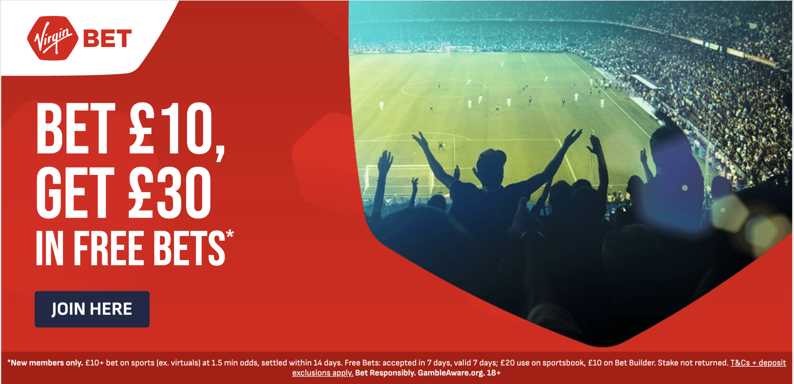 *New members only. £10+ bet on sports (ex. virtuals) at 1.5 min odds, settled within 14 days. Free Bets: accepted in 7 days, valid 7 days; £20 use o...