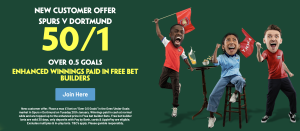 Spurs v Dortmund 50/1 Paddy Power Offer – Over 0.5 Goals Explained